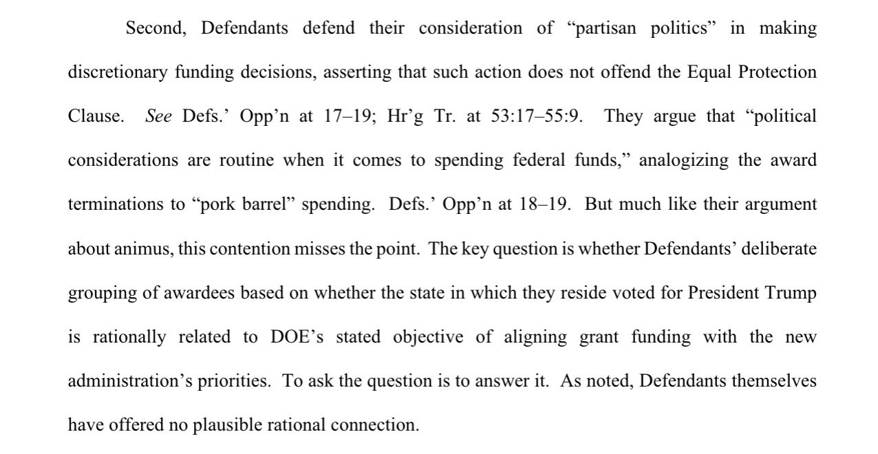 JUST IN: Judge Mehta rules that Trump/Russ Vought's termination of environmental grants during the shutdown â targeted solely at states that voted for Kamala Harris â violated the 5th Amendment's Equal Protection clause and orders them restored.