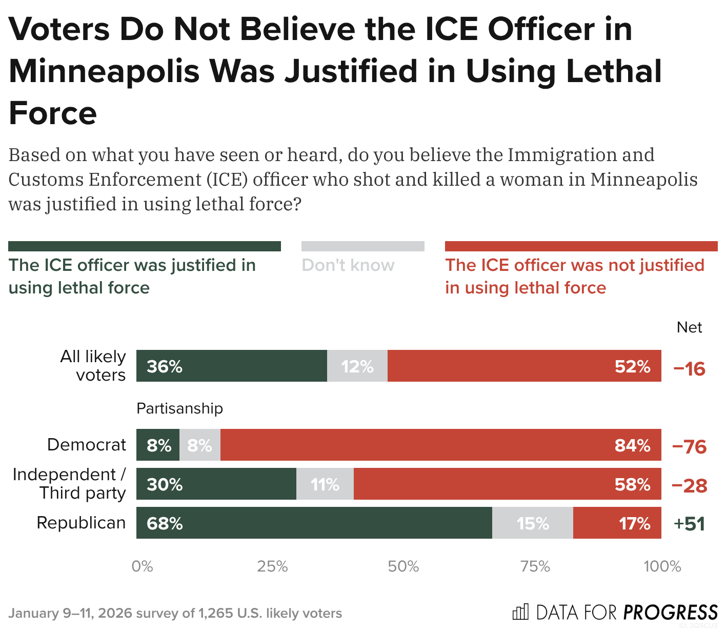 A Majority of Voters Say ICE's Use of Lethal Force in Minneapolis Was Not Justified (Original Post)