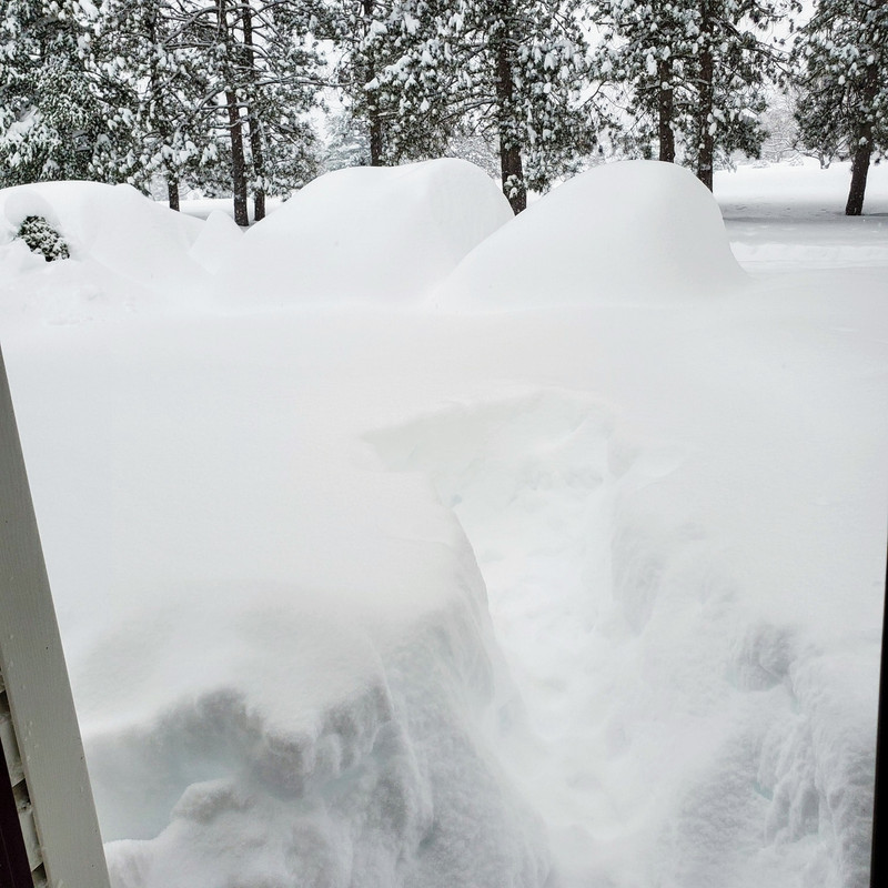 It took me two hours to shovel out a square area in the backyard so the dog had a place to pee.