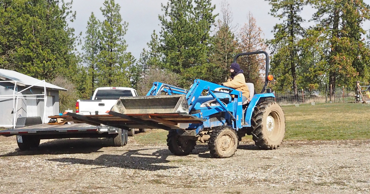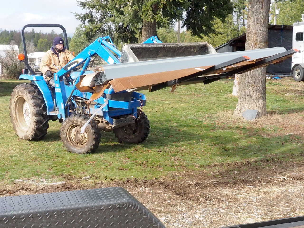 Yesterday Laurie picked up her new clamp-on bucket forks for the tractor.