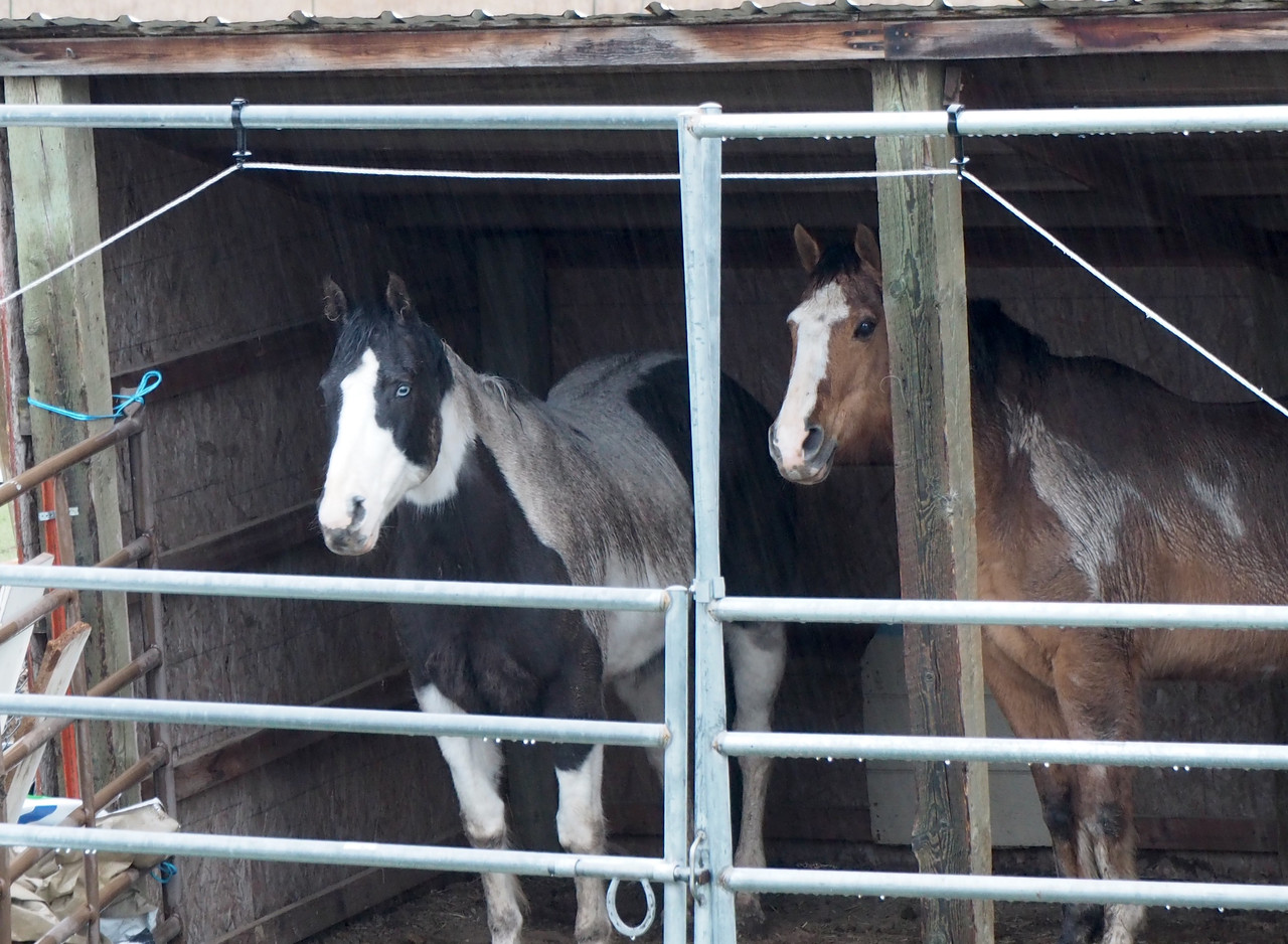 We had a rainy, soggy day recently. Though they're still without a real barn,