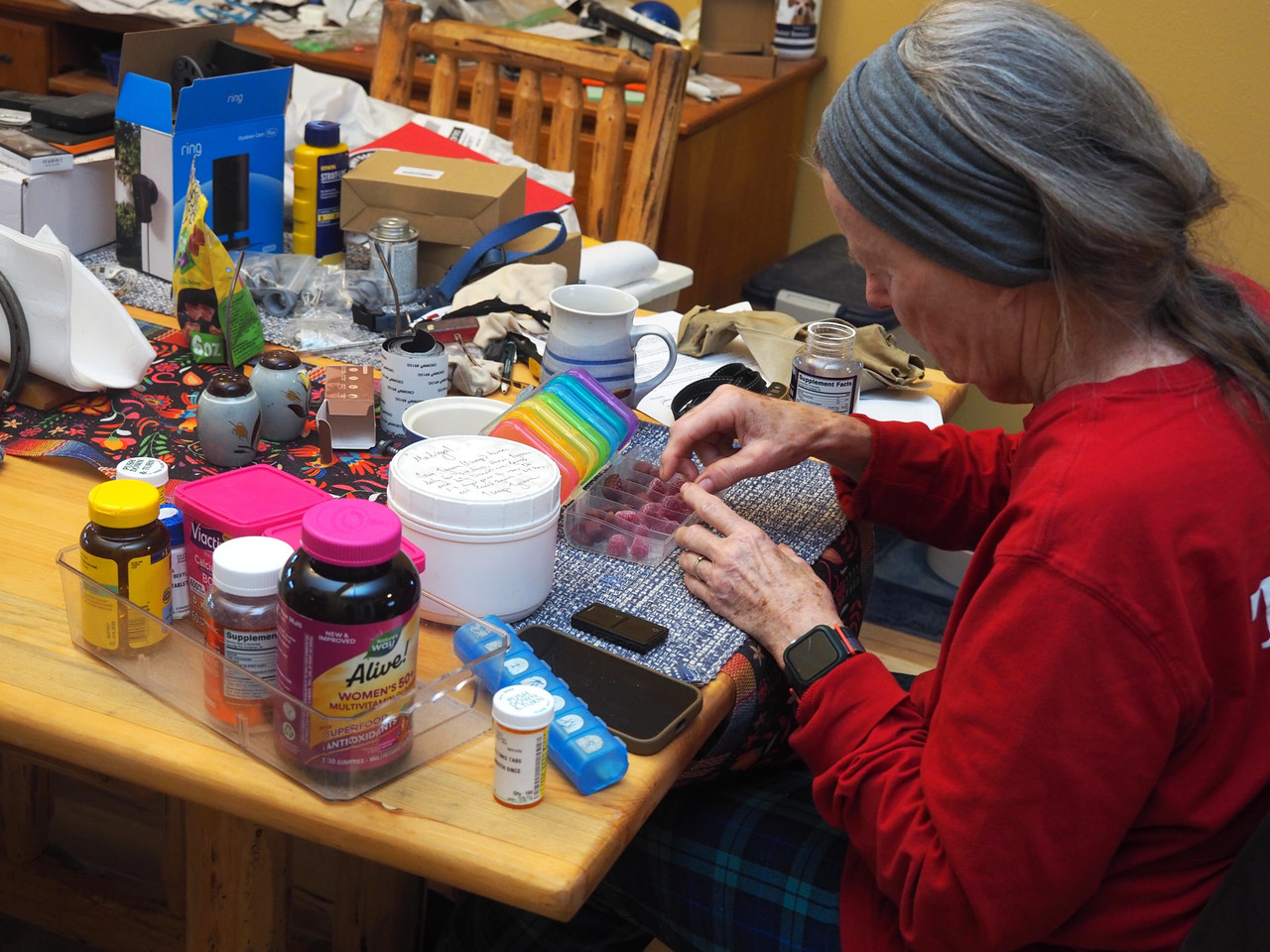 Saturdays after dinner our in-home pharmacist fixes up meds for the week.
