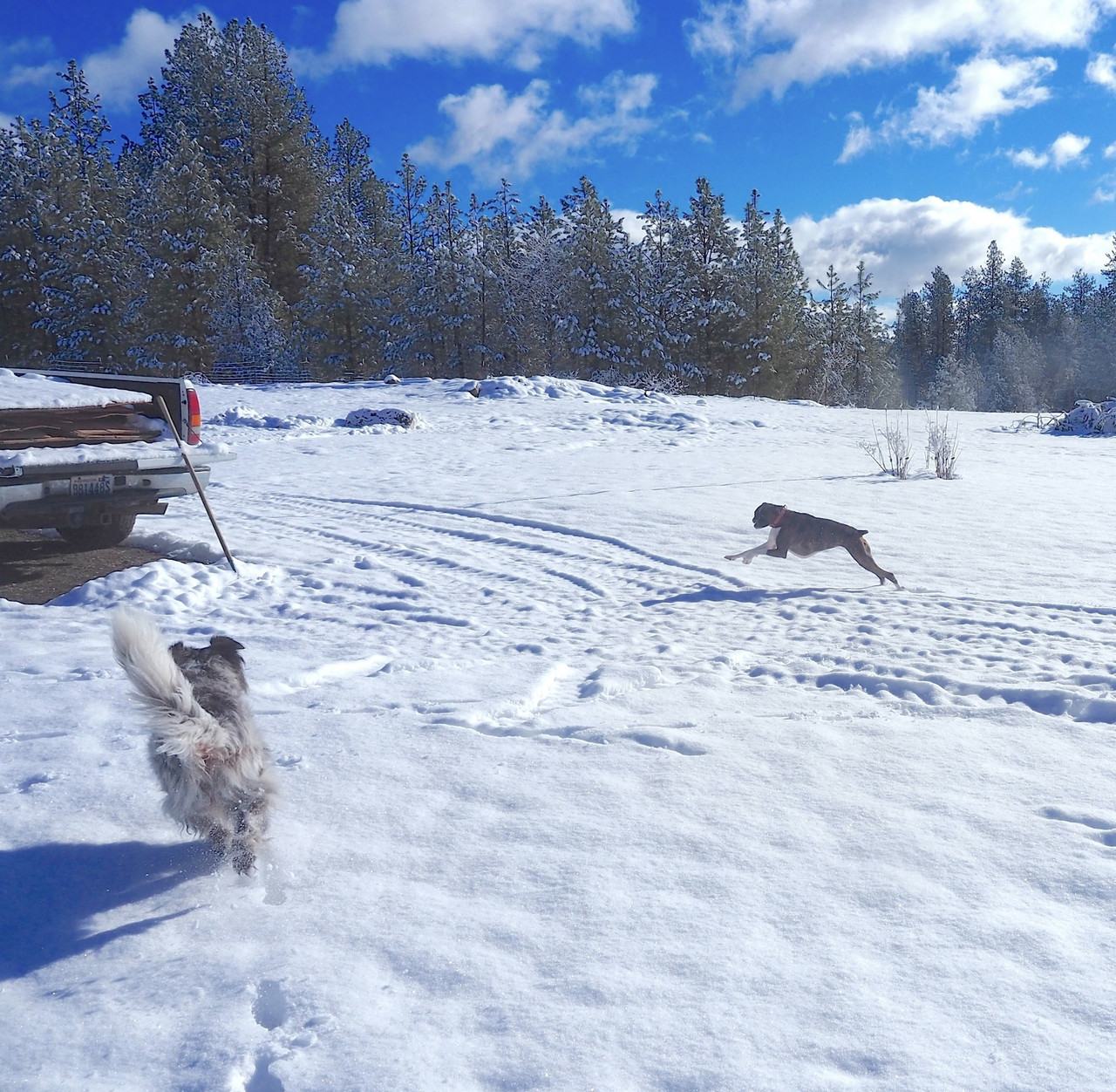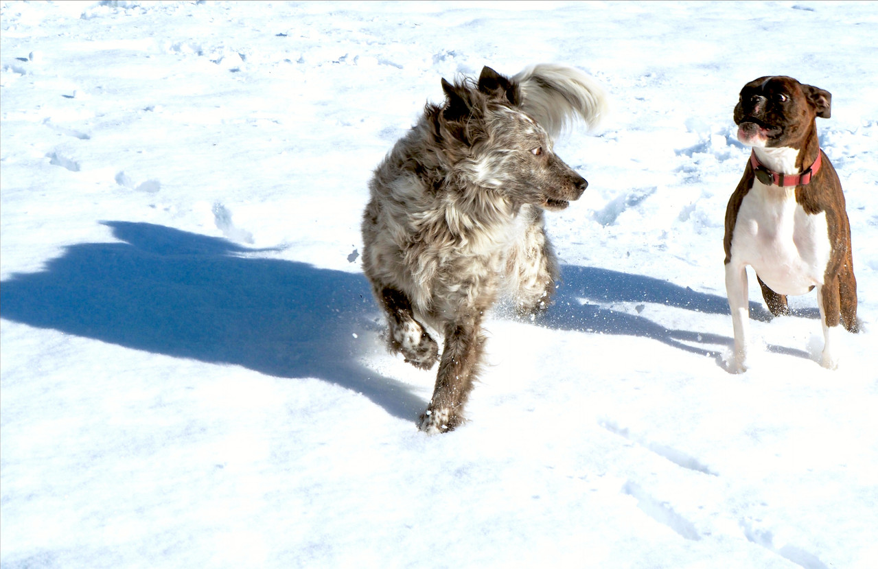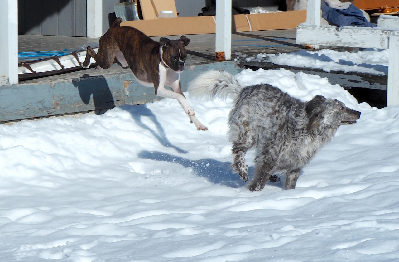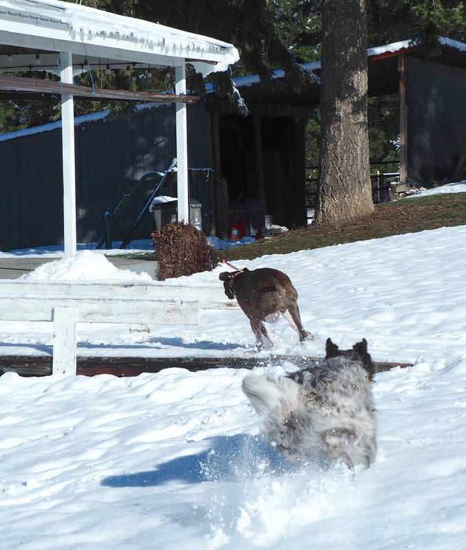 Yesterday she and Shadow romped around in recently fallen snow.