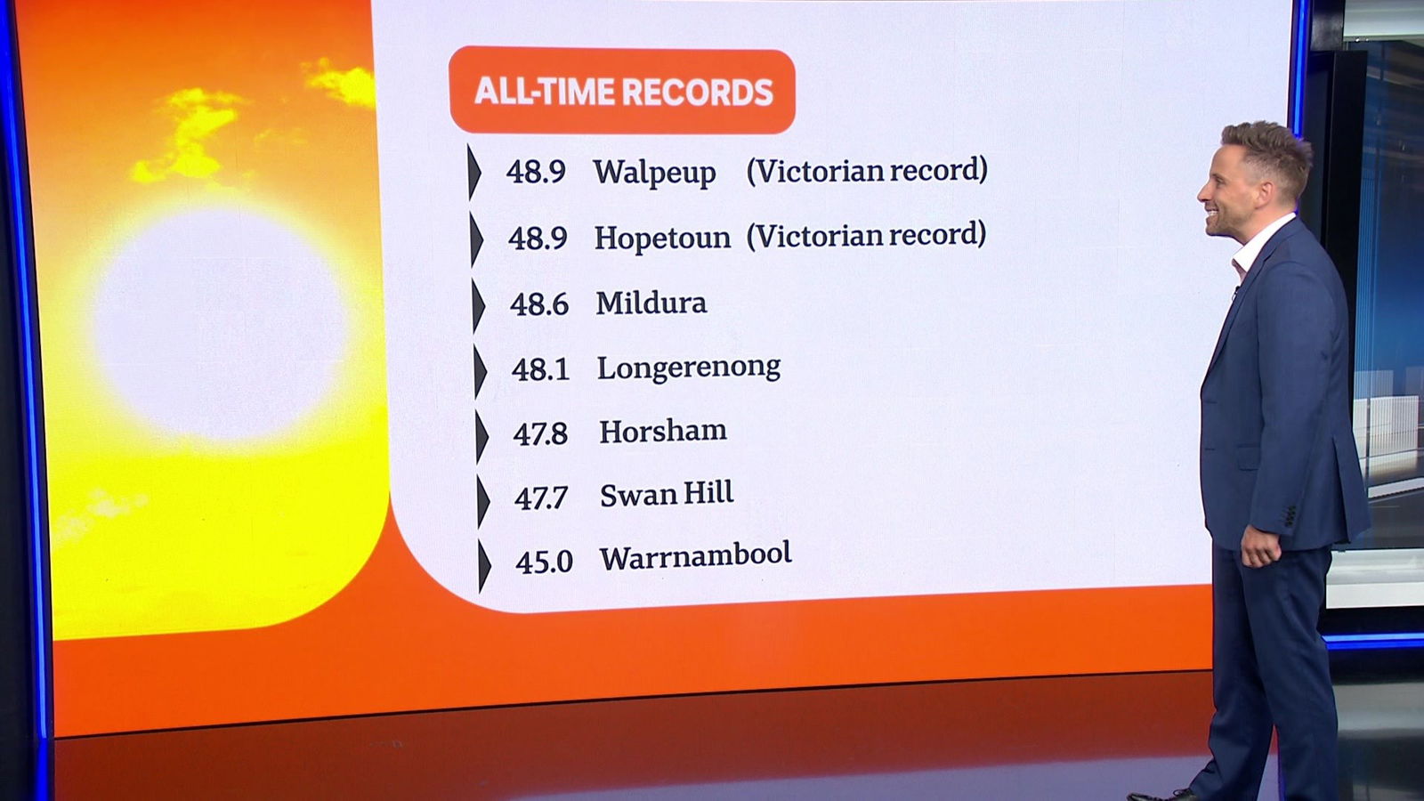 ABC meteorologist Adam Morgan confirms that multiple Victorian towns reached all-time temperature records today.